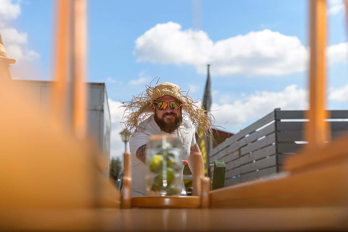 Ein Jahr später ging es weiter. Parallel zum Flößerfest in Finowfurt. Musik lag in der Luft, Cocktails klirrten in den Gläsern, irgendwo lief ein Beat, der sofort gute Laune machte. Und dazwischen wieder: Eisstöcke. 24 Teams, volle Startlisten, mehr Anmeldungen als Plätze. Eisstockschießen als Sommersport, der eigentlich keiner sein wollte und gerade deshalb funktionierte.
